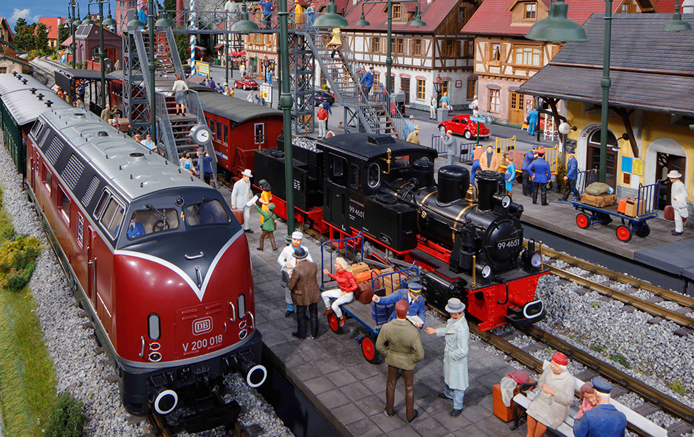 Freut Euch auf eine Entdeckungsreise in Miniatur. Auf den verschiedenen Modellbahn-Anlagen (Spur H0 und Spur G) mit einer Fläche von rund 730 qm auf zwei Stockwerken erwarten den Besucher liebevoll gestaltete Details und ganz viel Zugverkehr. Denn auf einem Gleisnetz mit mehr als 2.500 Metern Länge fahren computergesteuert über 200 Züge vom ICE bis zu Dampflok gezogenen Zügen.